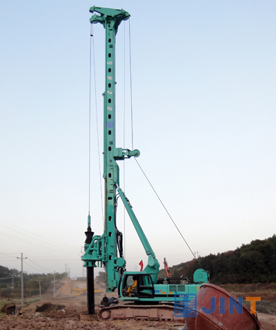 沪昆高铁诸暨杭长铁路段建设工地,地质比较复杂,岩层浅,施工难度比较大。SH30多功能旋挖钻机是上海金泰公司金泰2010年推出的第二代入岩多功能旋挖钻机。该设备运用大三角结构,可以采用卷扬加压或油缸加压,比传统的四联杆结构更稳定、加压能力得到大大提高。在该工地,金泰SH30多功能钻机钻孔直径1米桩,3米开始入岩,岩层为弱风化砂砾岩,岩层抗压强度达到60MPa,平均每小时下钻两米,成孔质量良好,获得客户的好评。机手要师傅和张师傅也提到:“根据多年的机手经验,金泰设备给我们最深刻的印象是质量好,稳定性高,使用方便。”